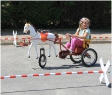 Des voitures à pédales rétro et porteurs pour se promener en liberté. Mais attention, il faut respecter les panneaux de signalisation et le feu !