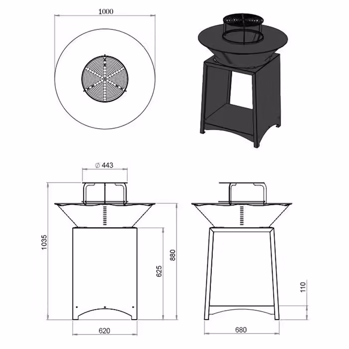 Offrez une expérience culinaire unique et conviviale à vos invités avec notre brasero de 1 mètre de diamètres sur roulettes pour un déplacement plus facile