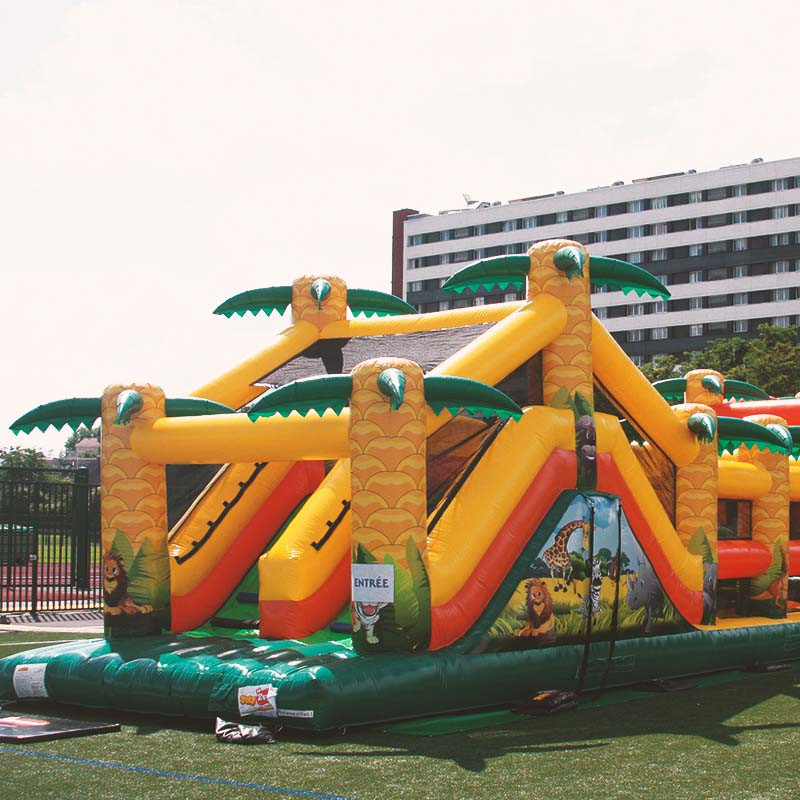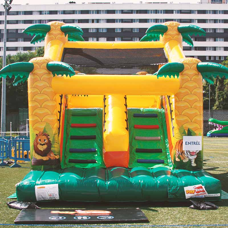 Découvrez des modèles variés et colorés pour s’adapter à tous les types d’événements : châteaux classiques, structures à thème (pirates, clowns…), Junggle…