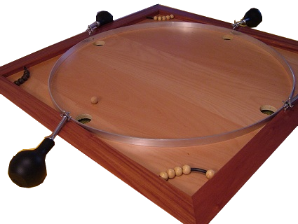 À l’aide de sa poire, chaque joueur doit repousser la bille pour qu’elle ne rentre pas dans son camp.